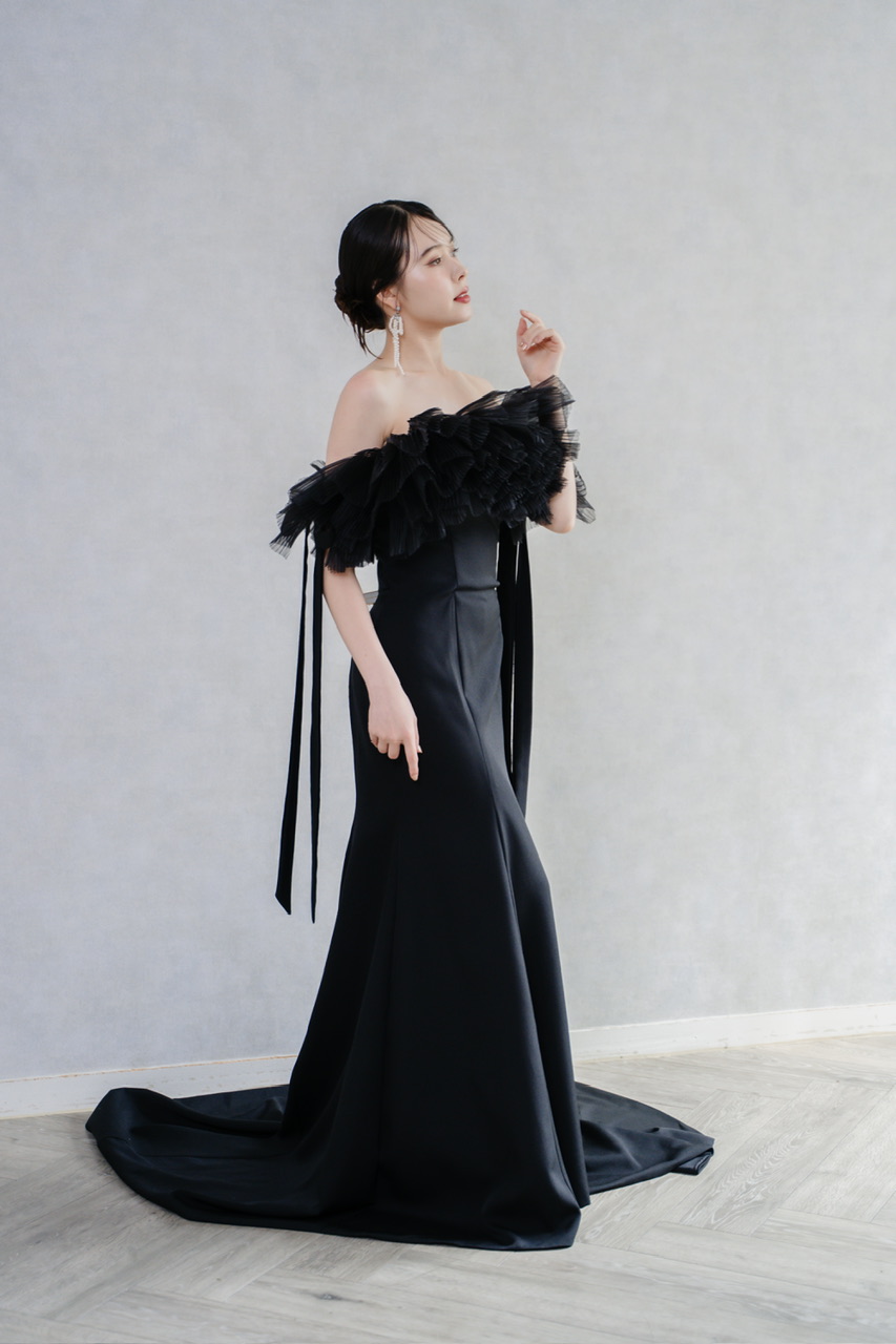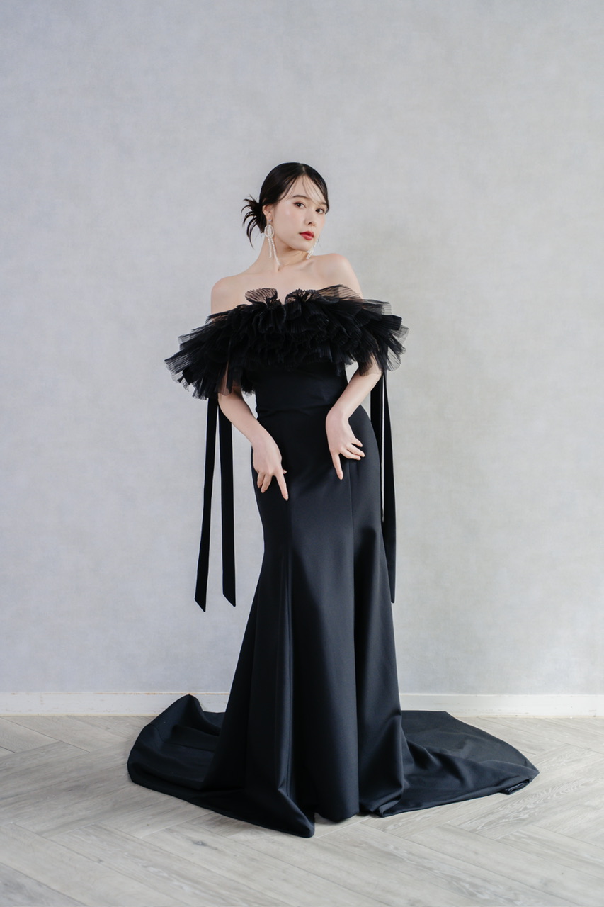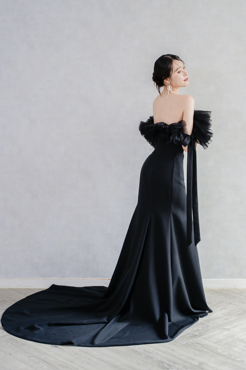ブラックドレスは、白のウェディングドレスとはまた違った大人でシックで他の色にはない印象を与えることが出来ます