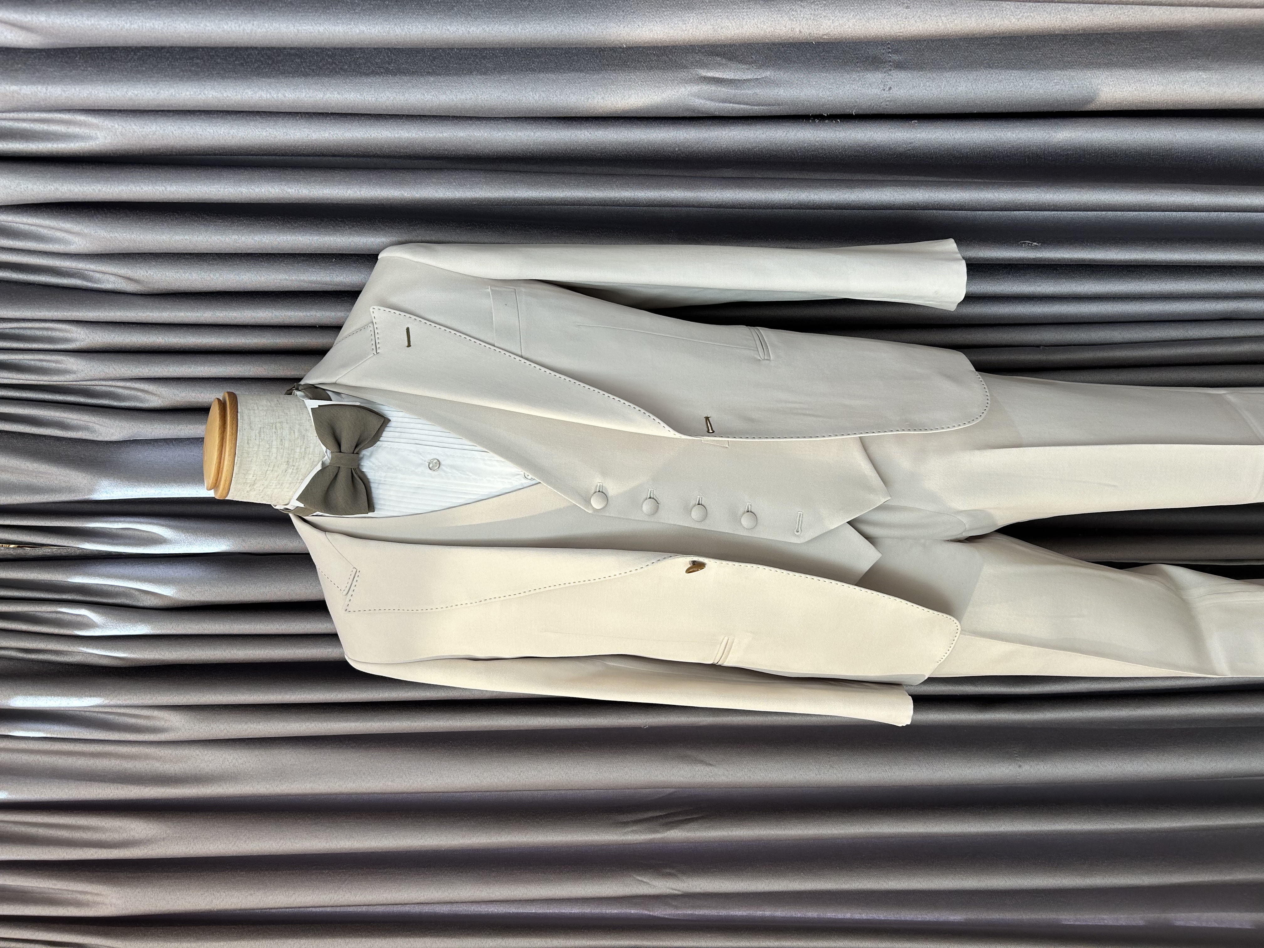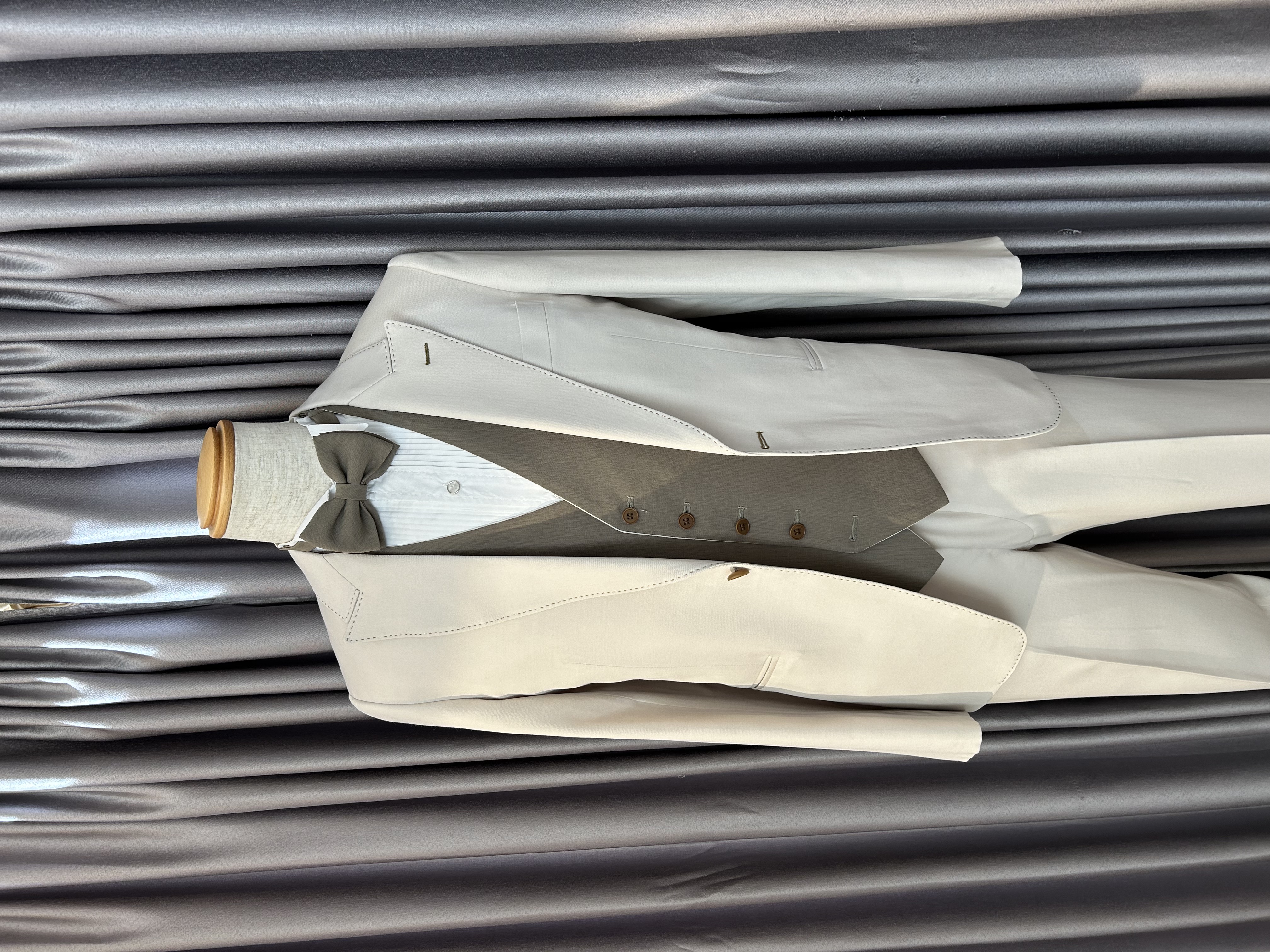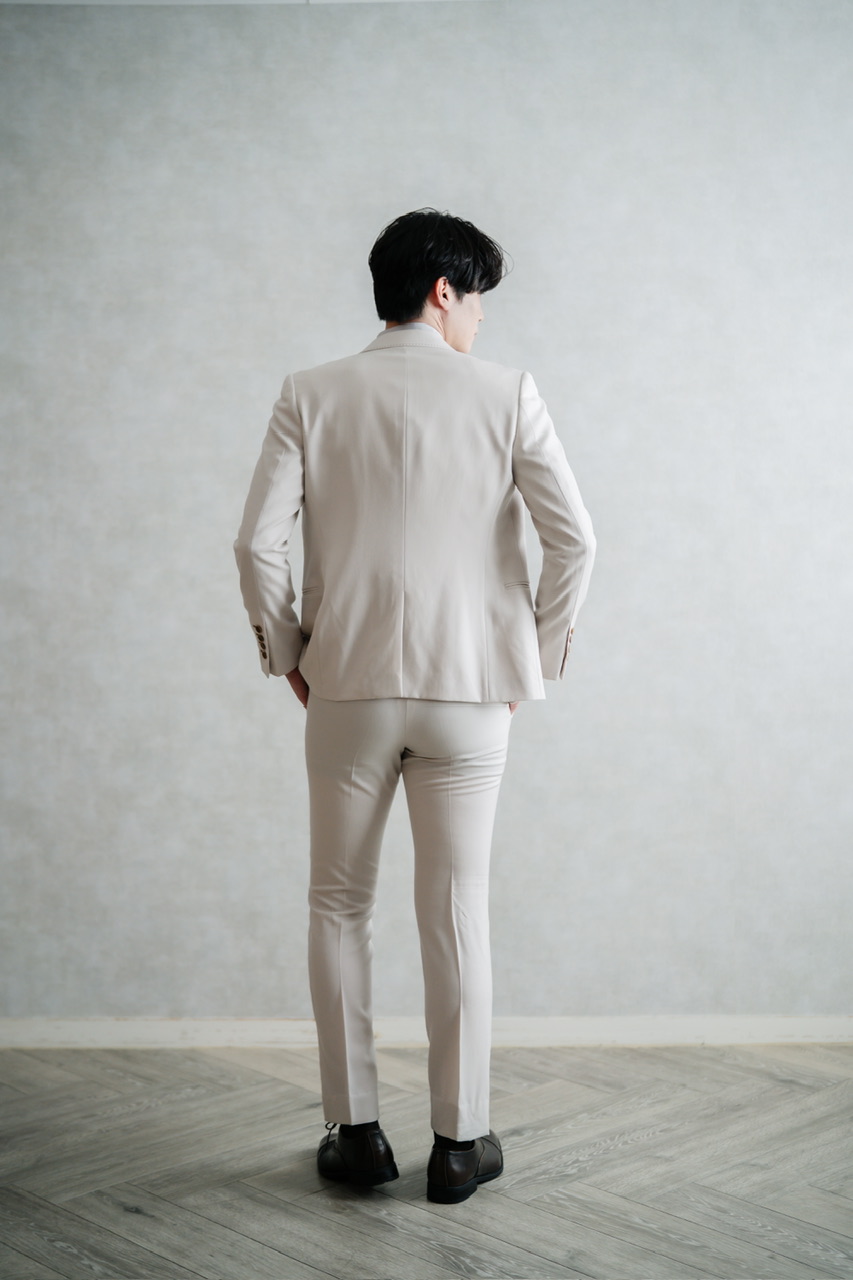 結婚式や前撮りにおすすめの新郎用ホワイトベージュスリーピースタキシードのジャケットのみのページです。