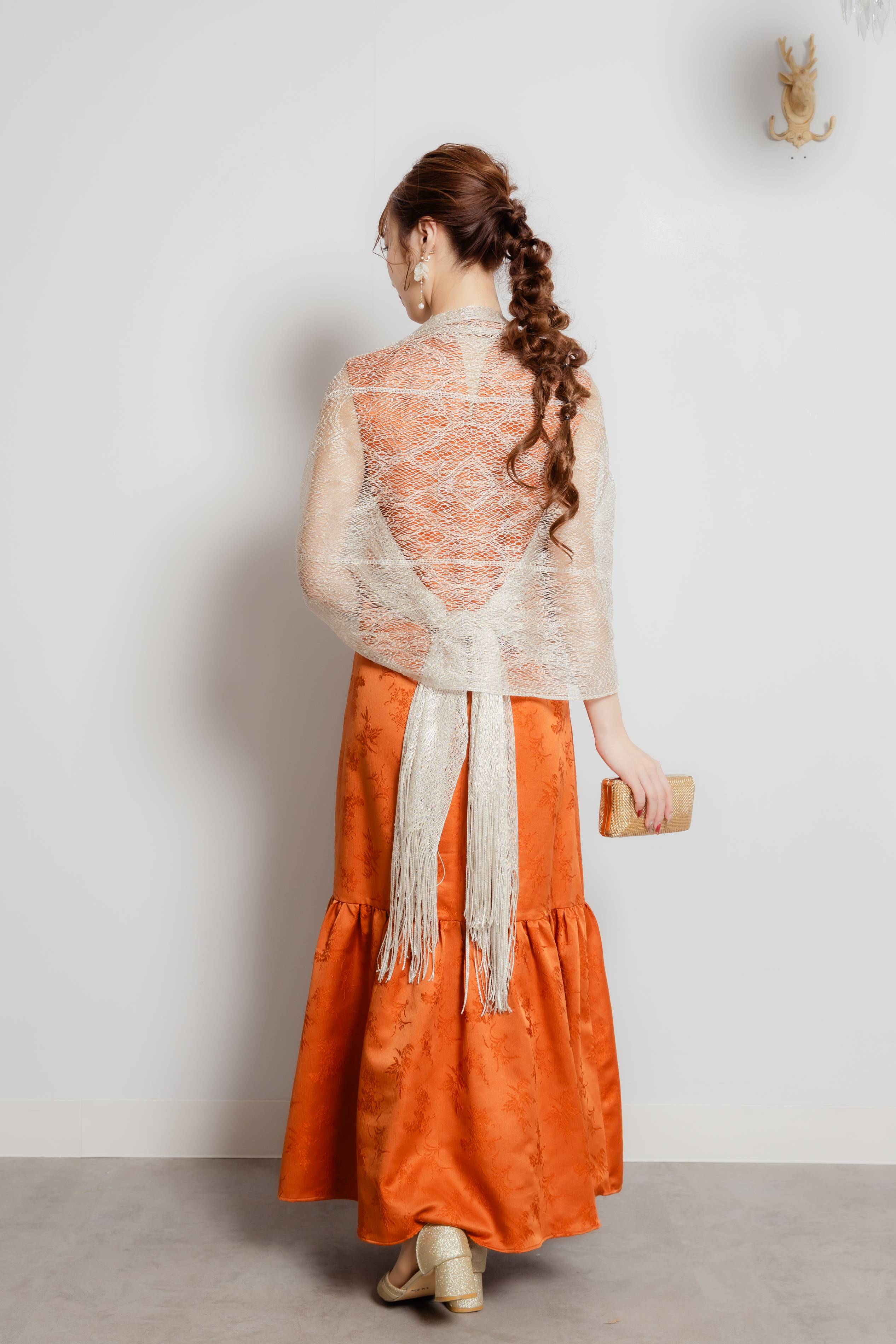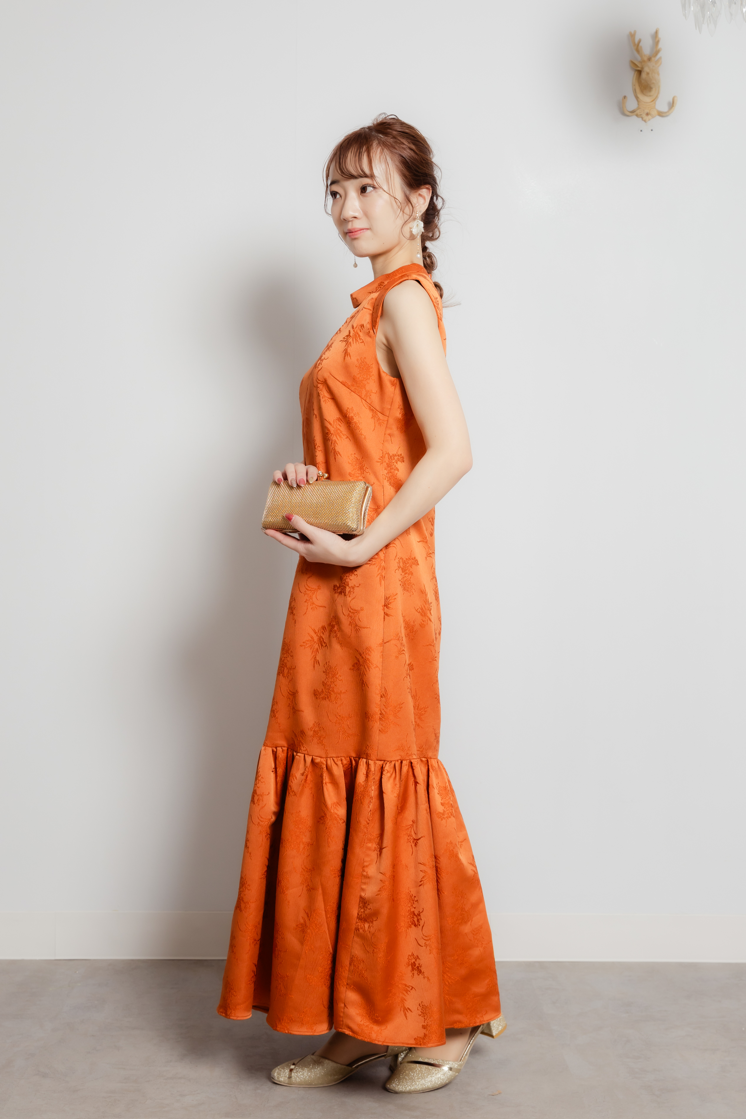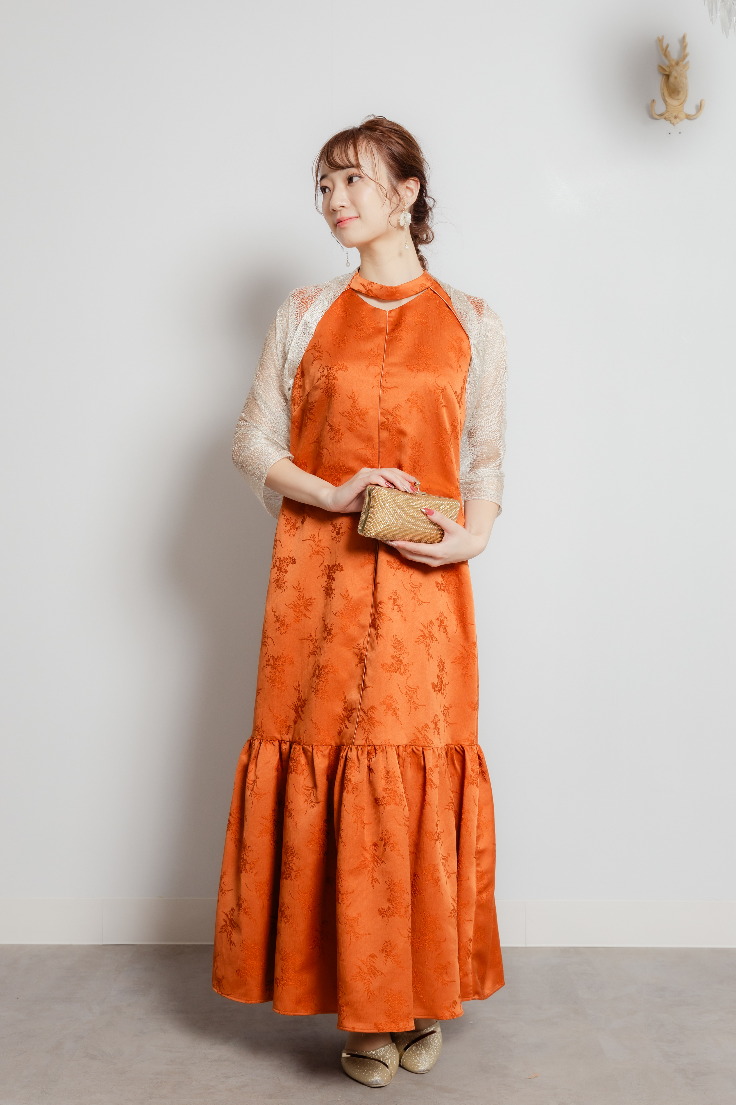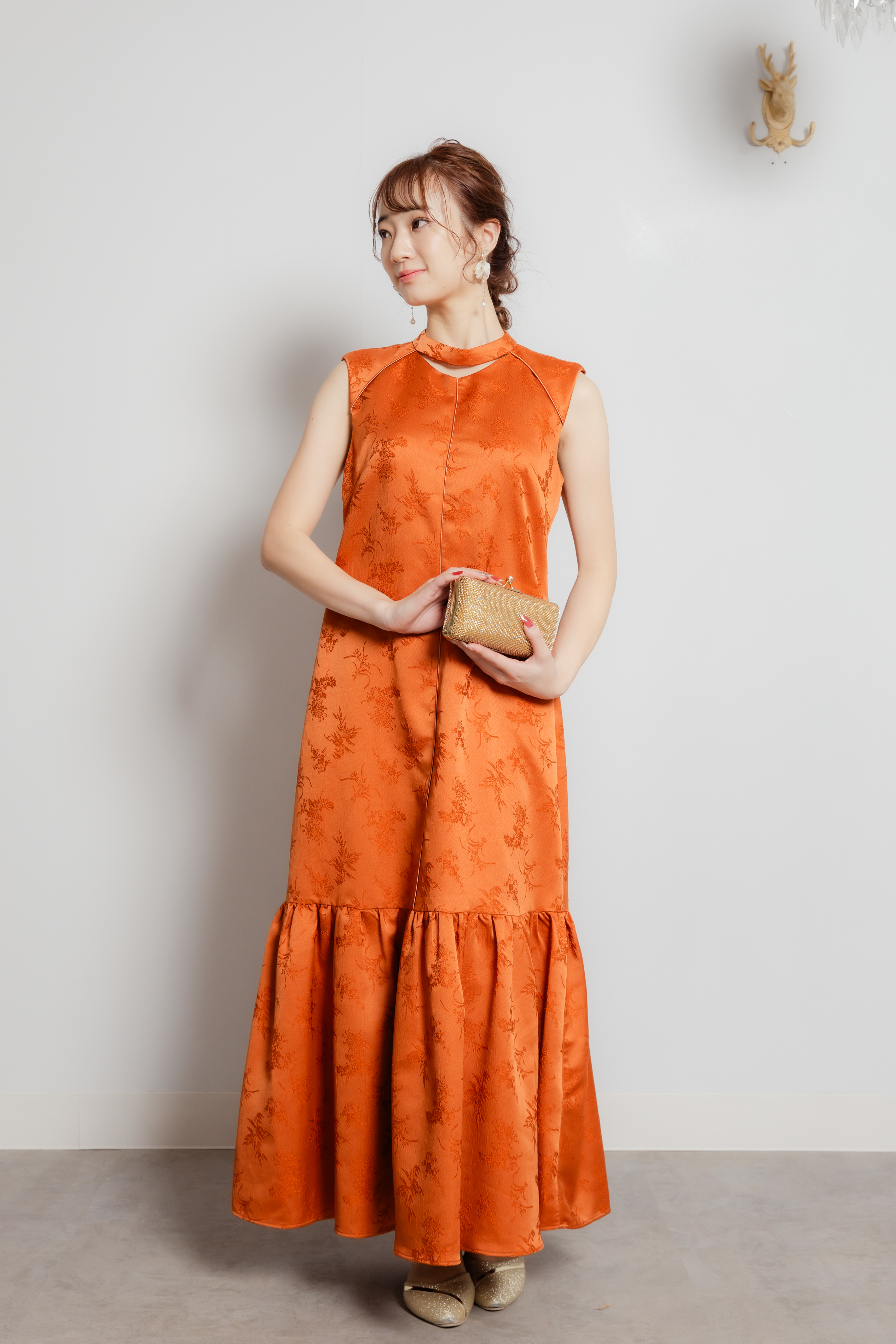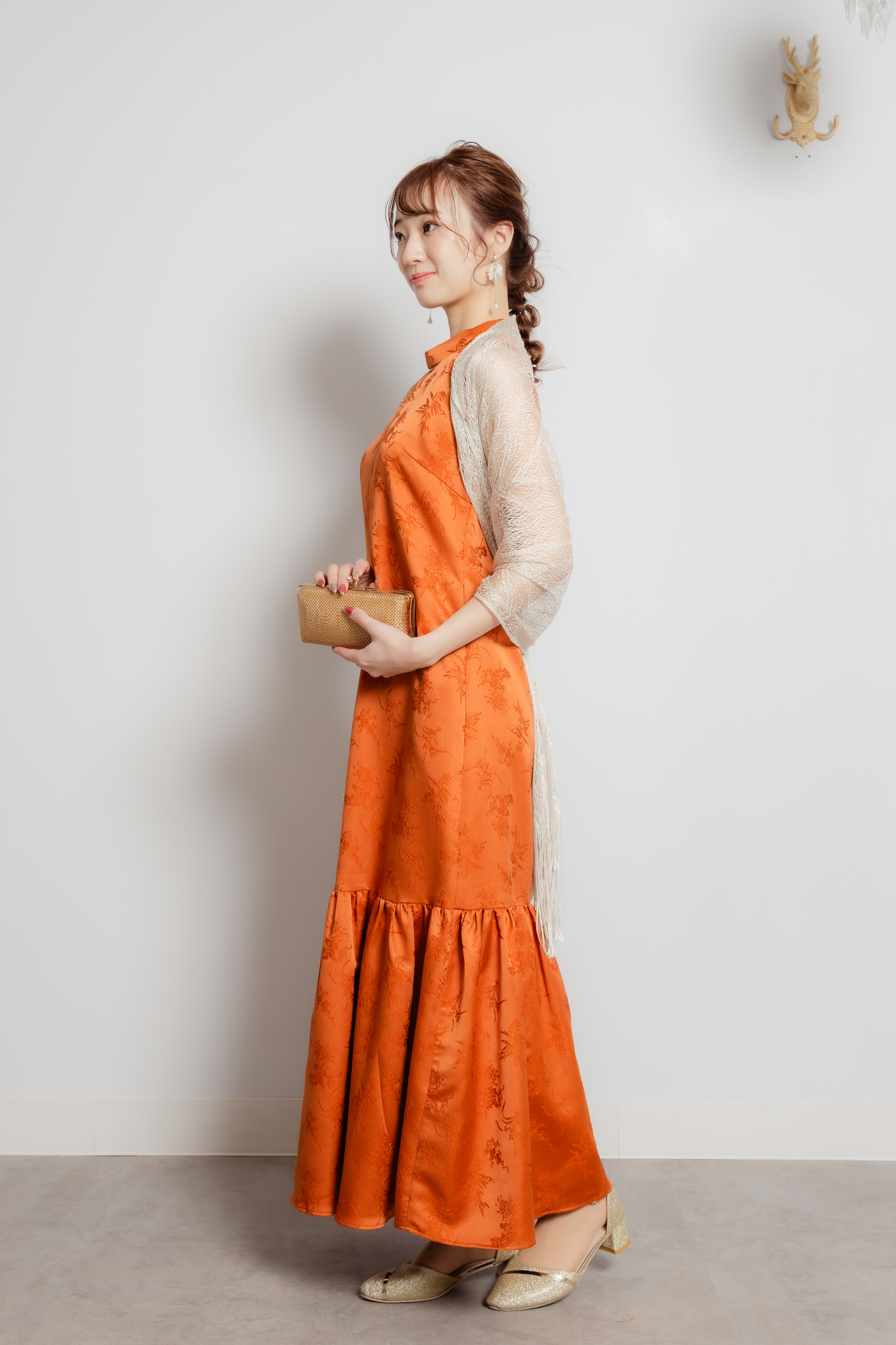 チャイナ風ティアードヘムジャガードドレス オレンジM