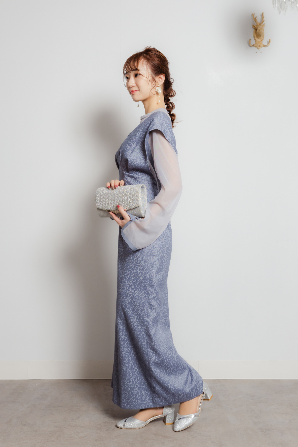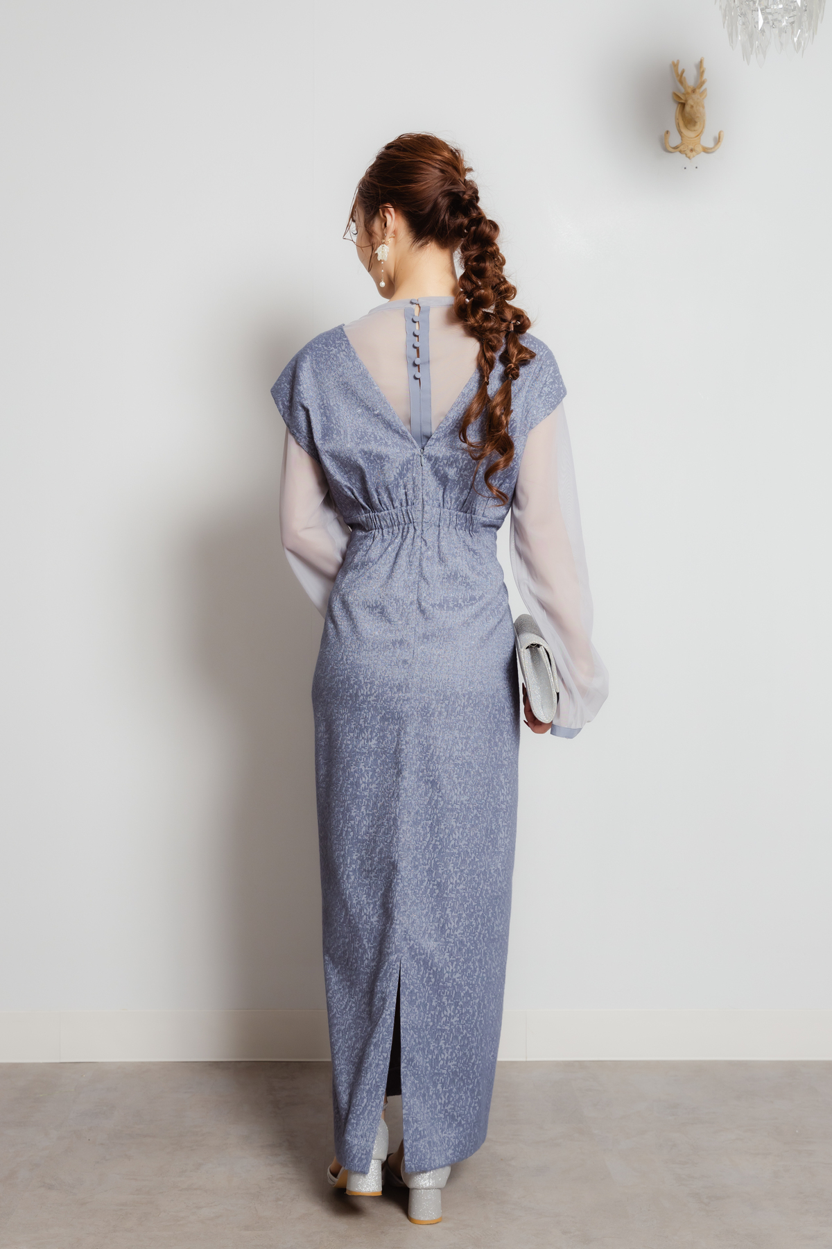 Vラインジャカードドレス ブルーL