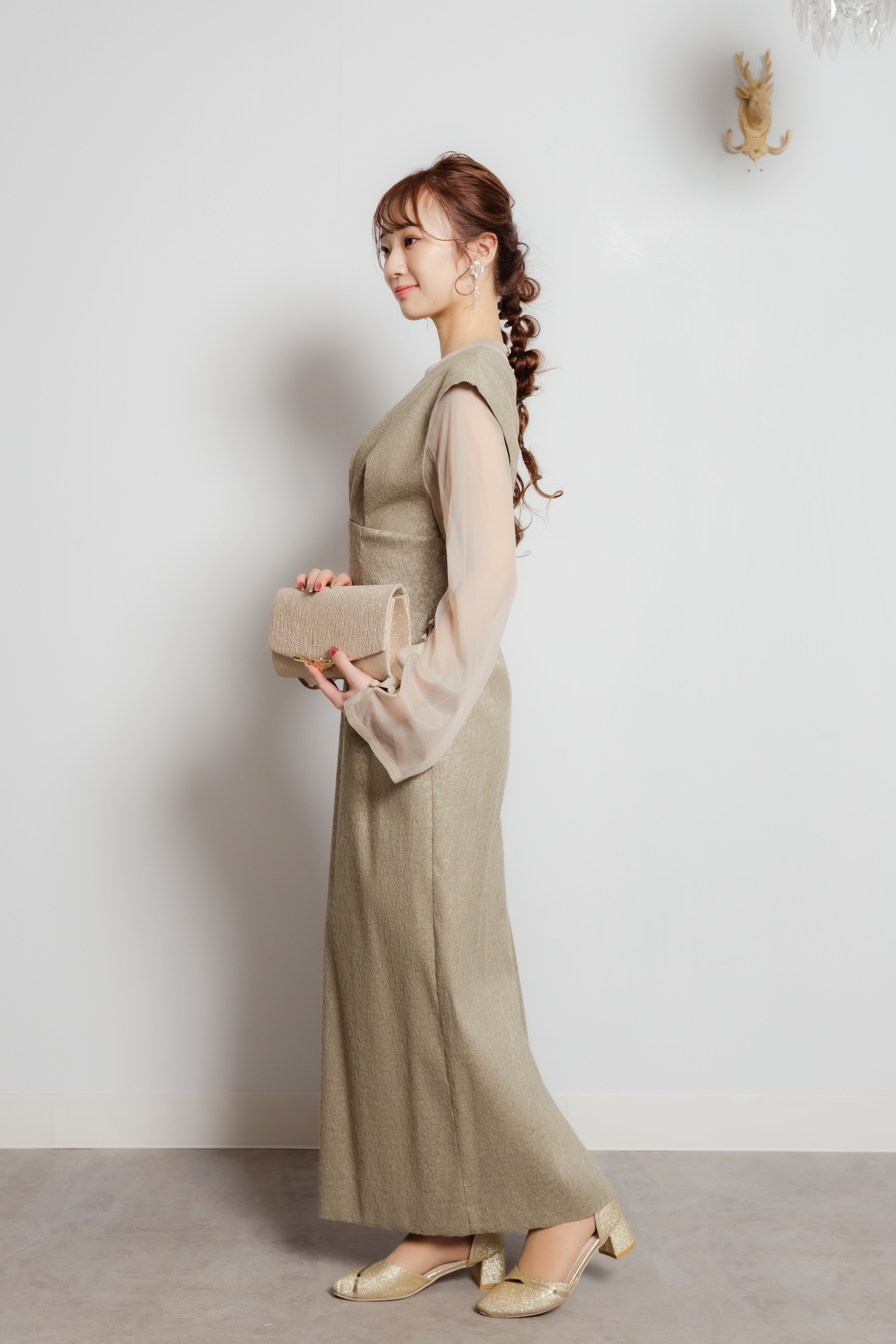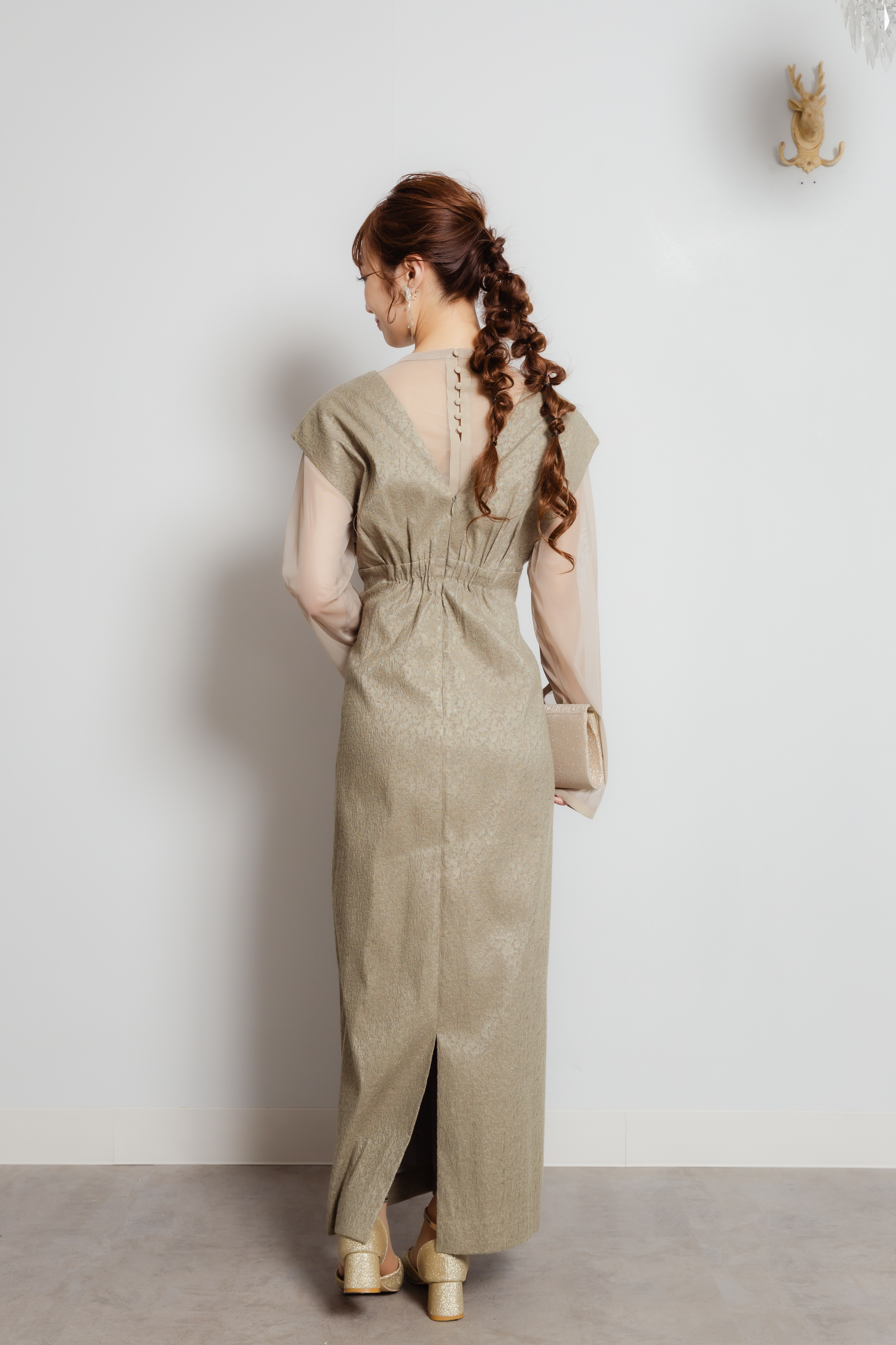 くるみボタンをふんだんに施した程よい透け感のチュールインナーとのセットアイテム。