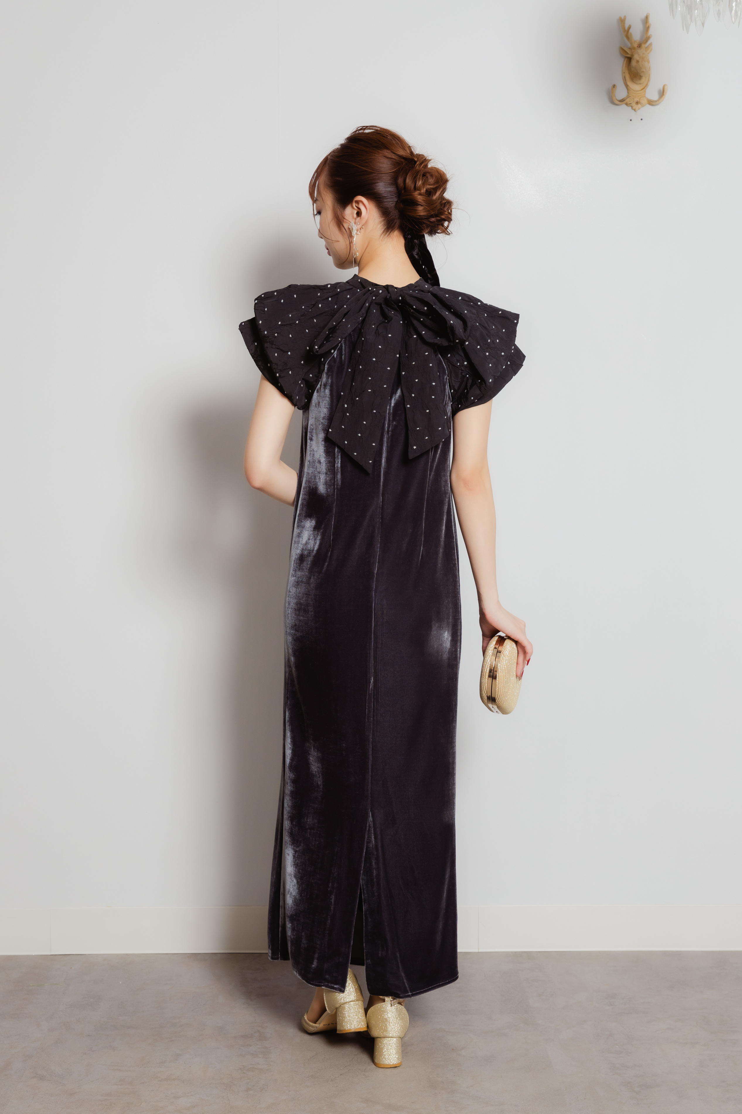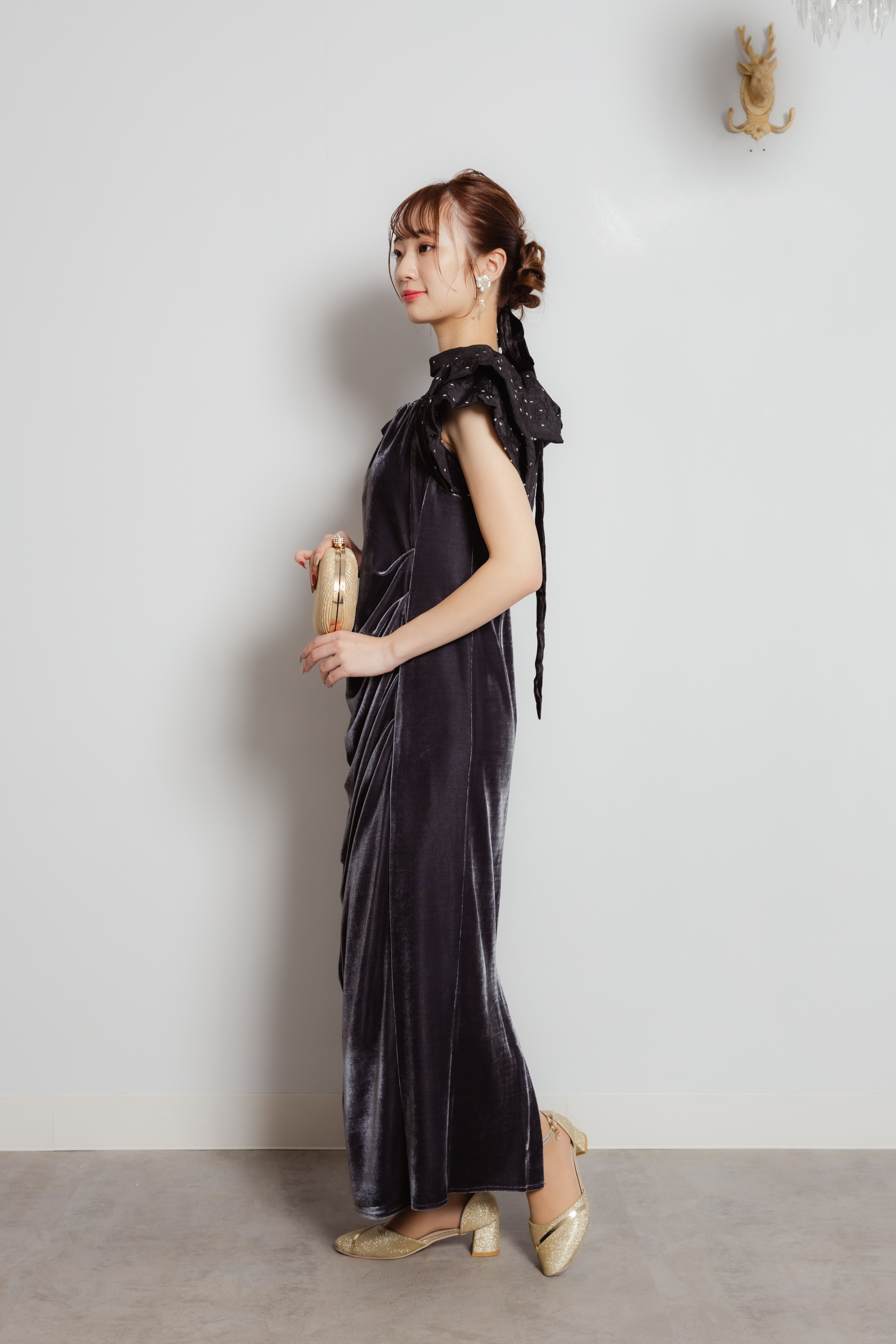 しっとりとした光沢が美しい“ベロア素材”が主役の一着。