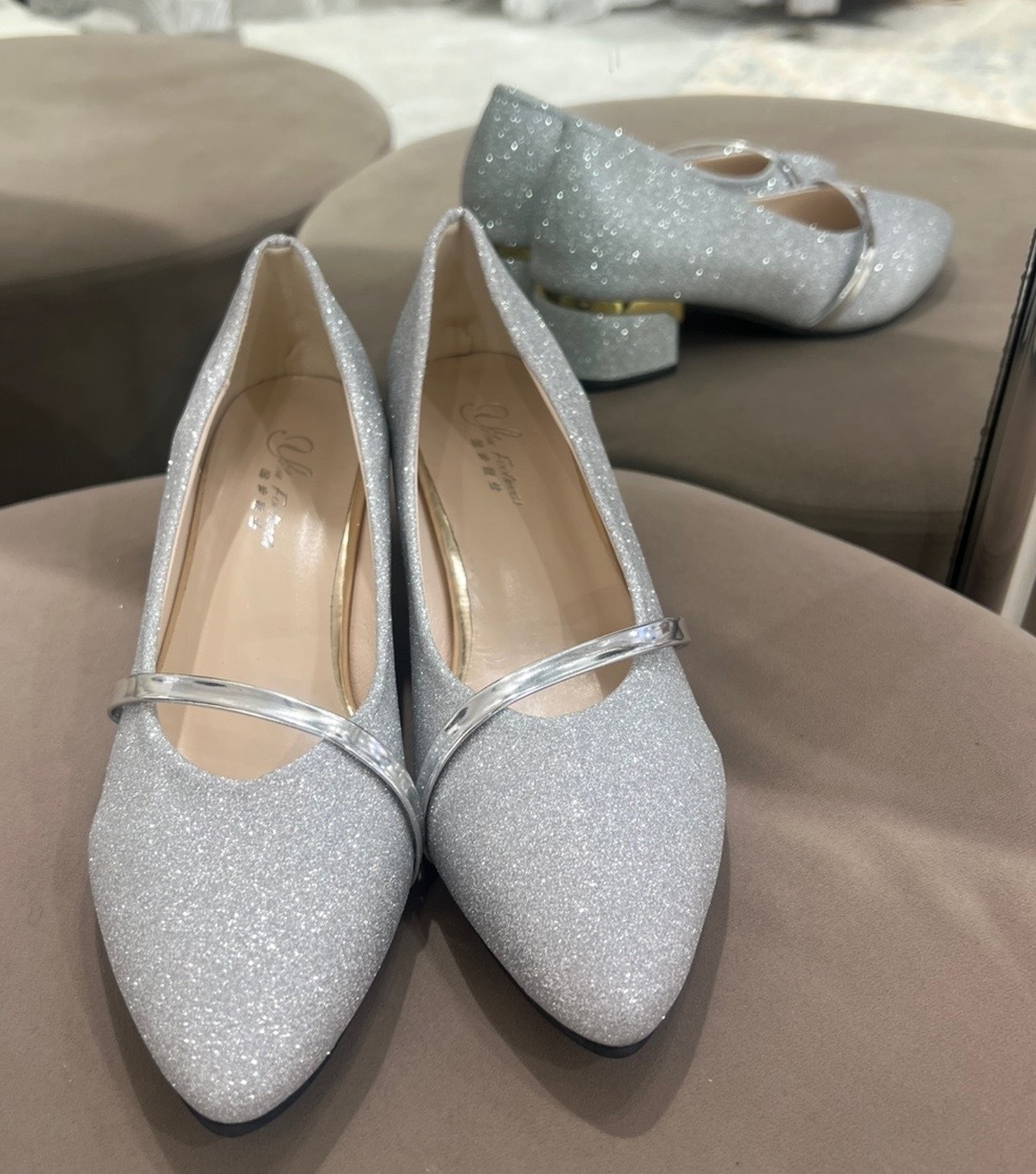 シルバーラメ パンプス 4センチヒール パーティー 参列