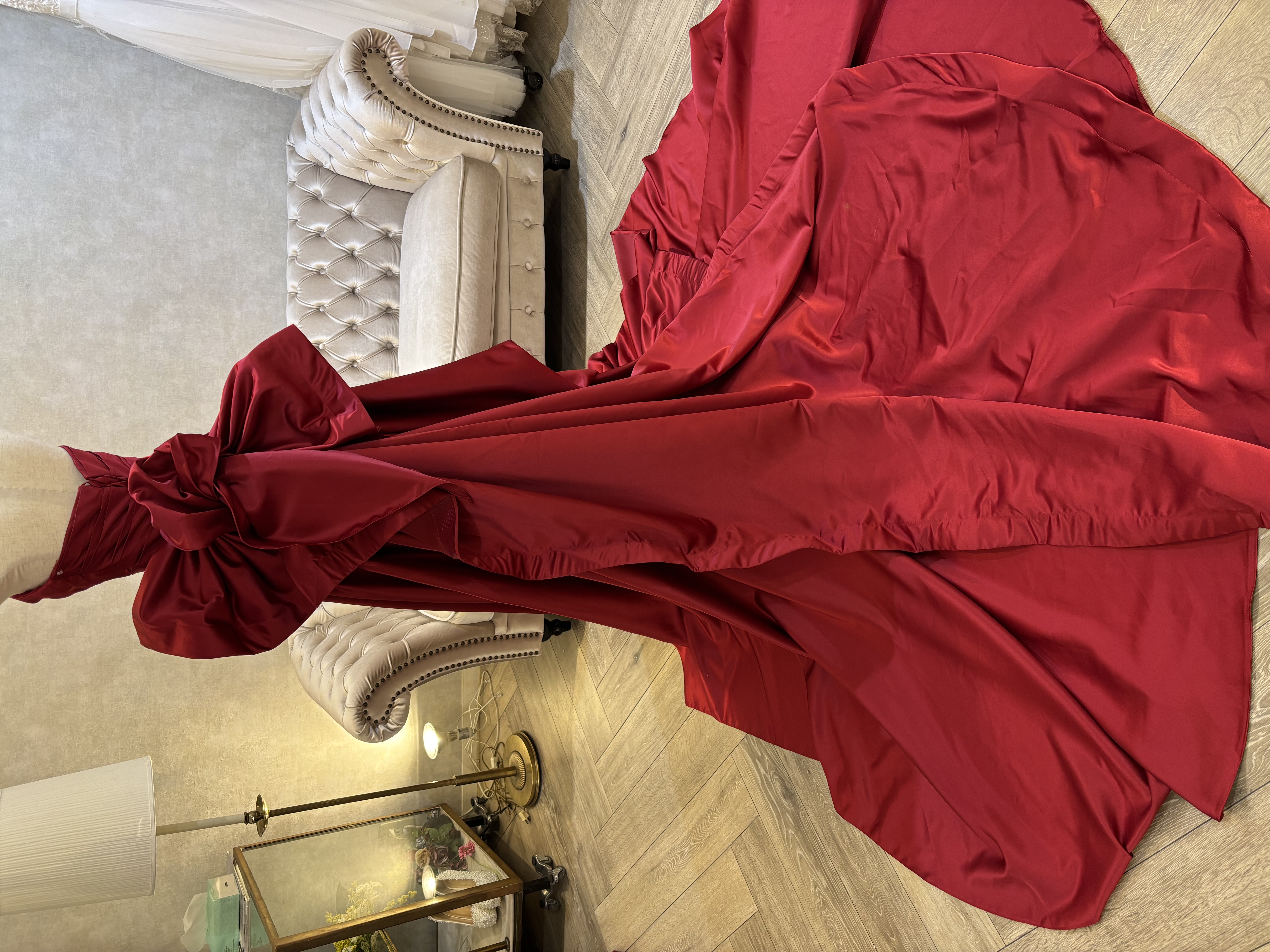 ディープレッドサテン (パフスリーブ・リボントレーン付属) 標準9〜13号