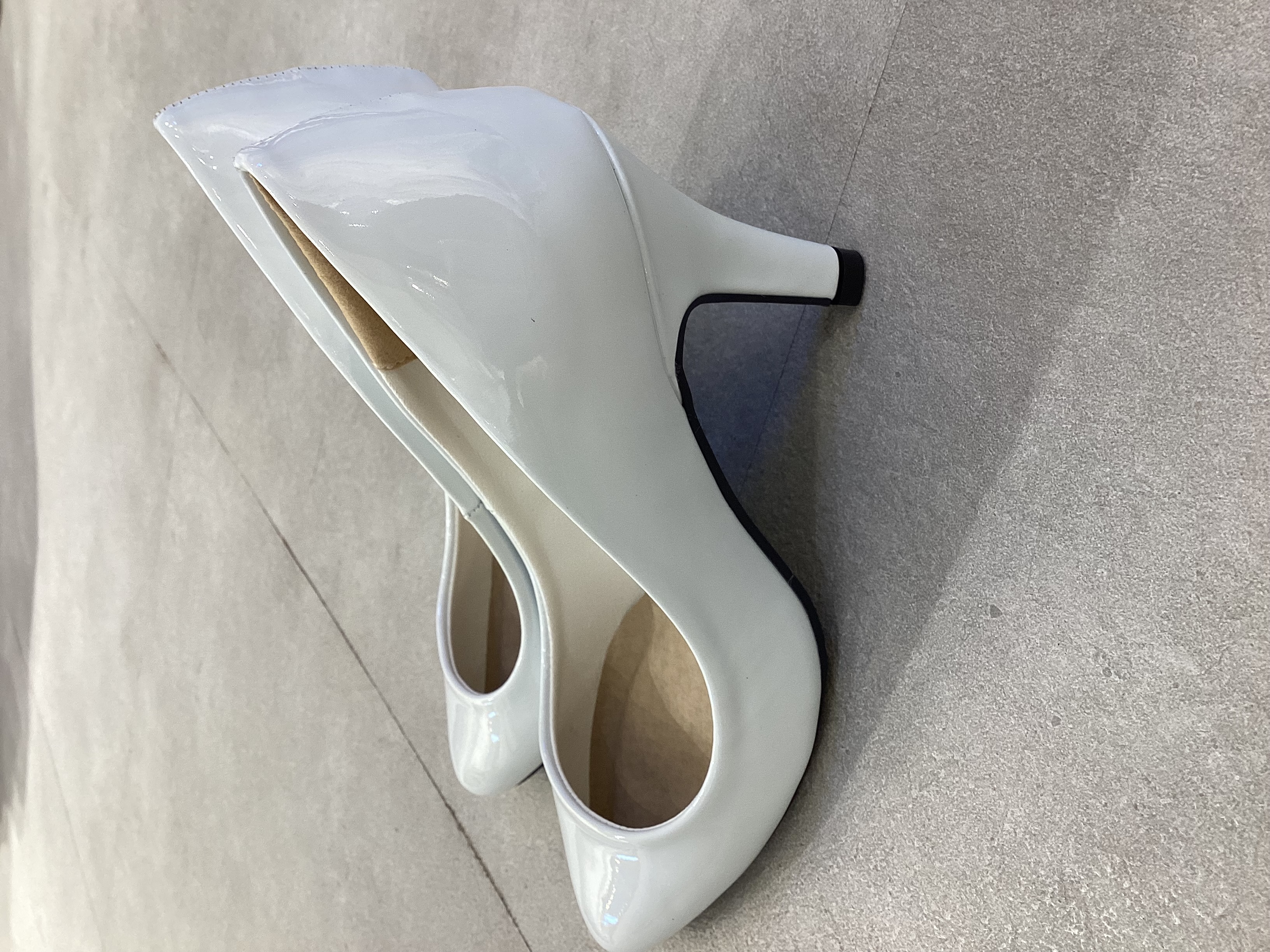 【パンプス】LIBERTYDOLL ホワイトエナメルパンプス 8cmヒール(23.0/S)