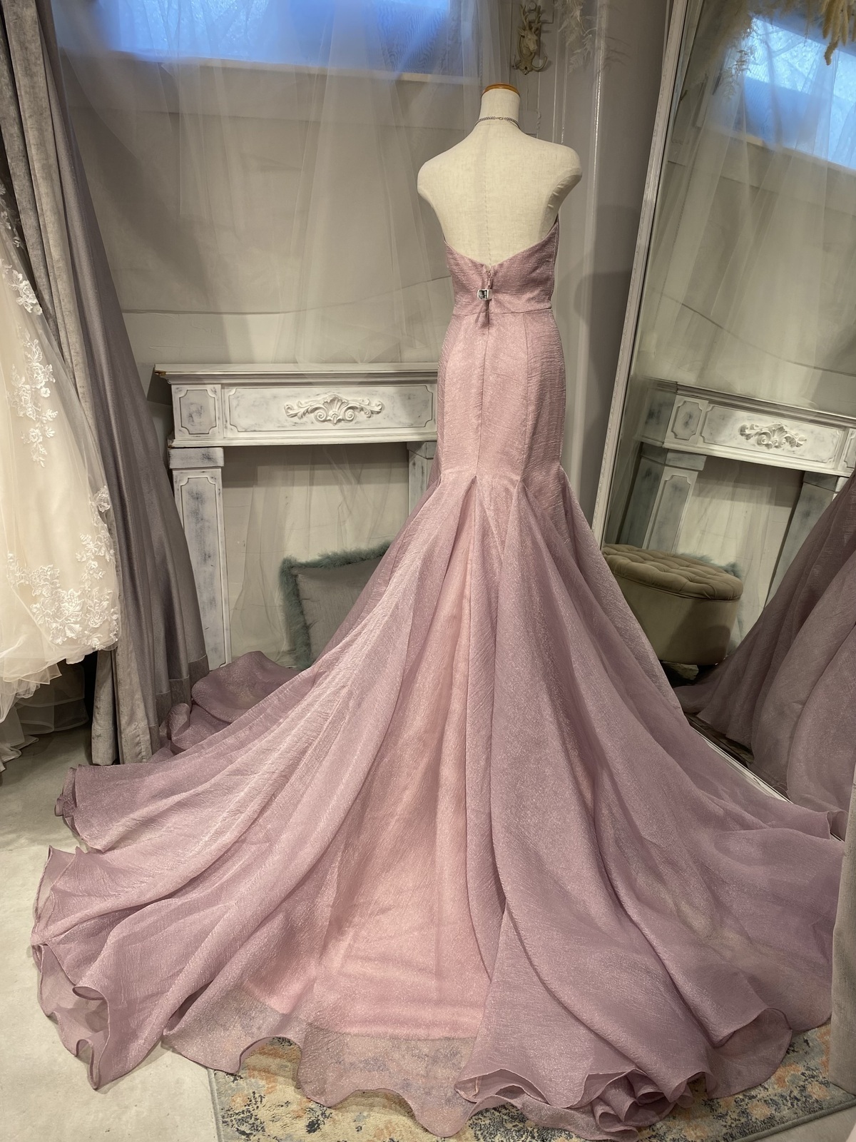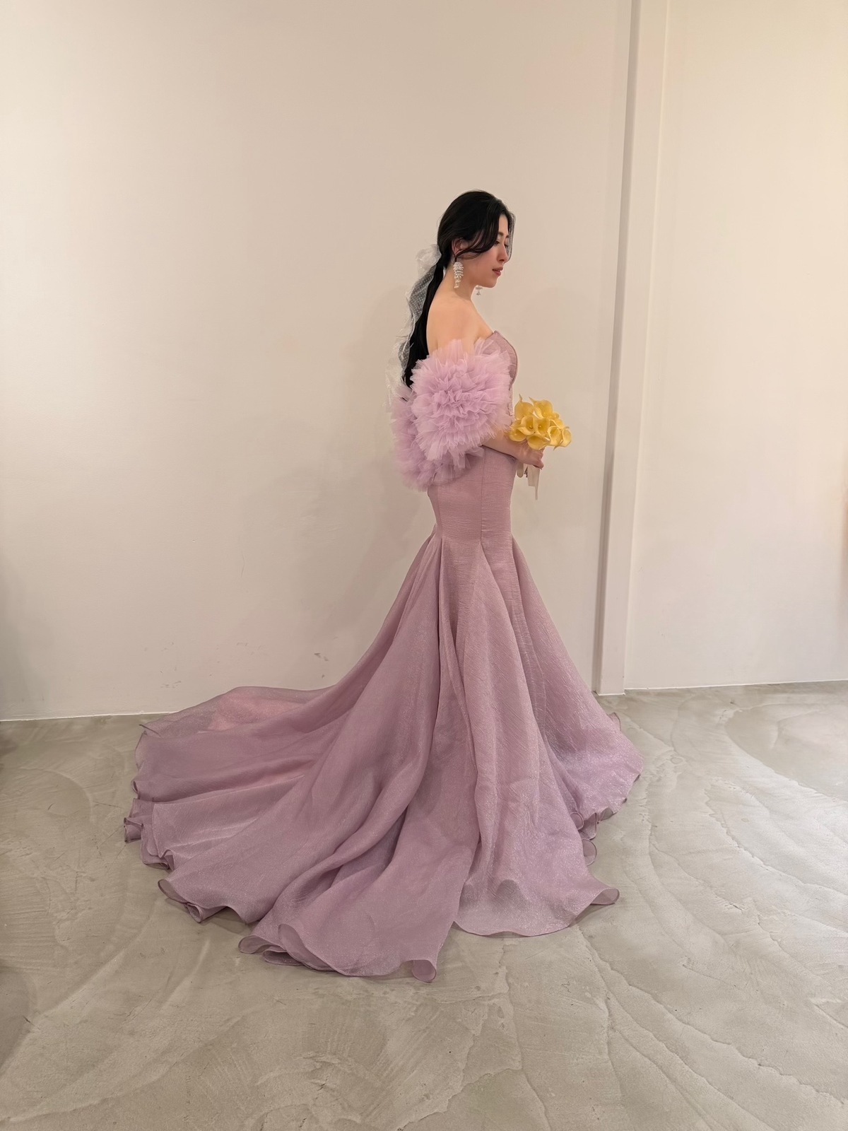 ライラックカラーマーメイドドレス オフショルダー取り外し可能 お色直しや二次会に!