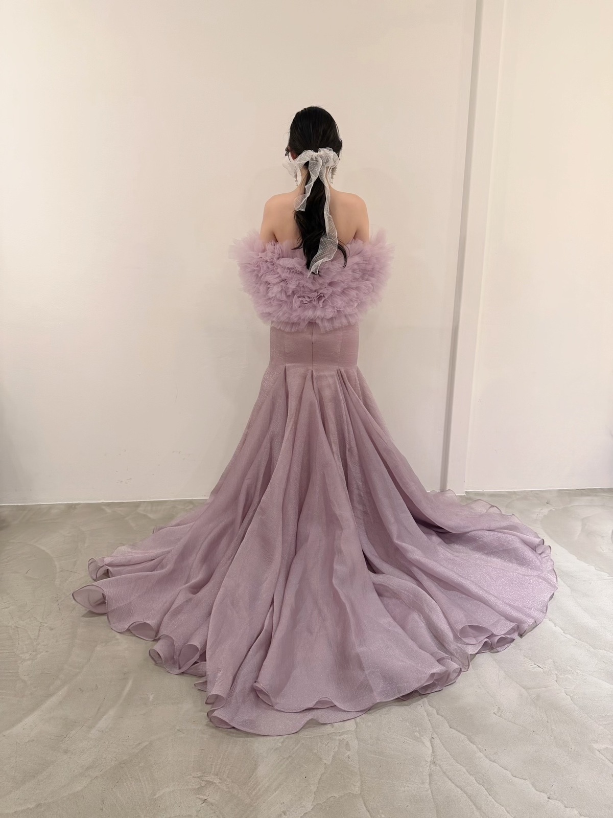 【カラードレス】オーガンジーライラックマーメイドドレス オフショルダー取り外し可能 9号/M