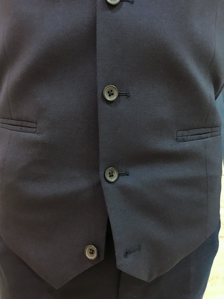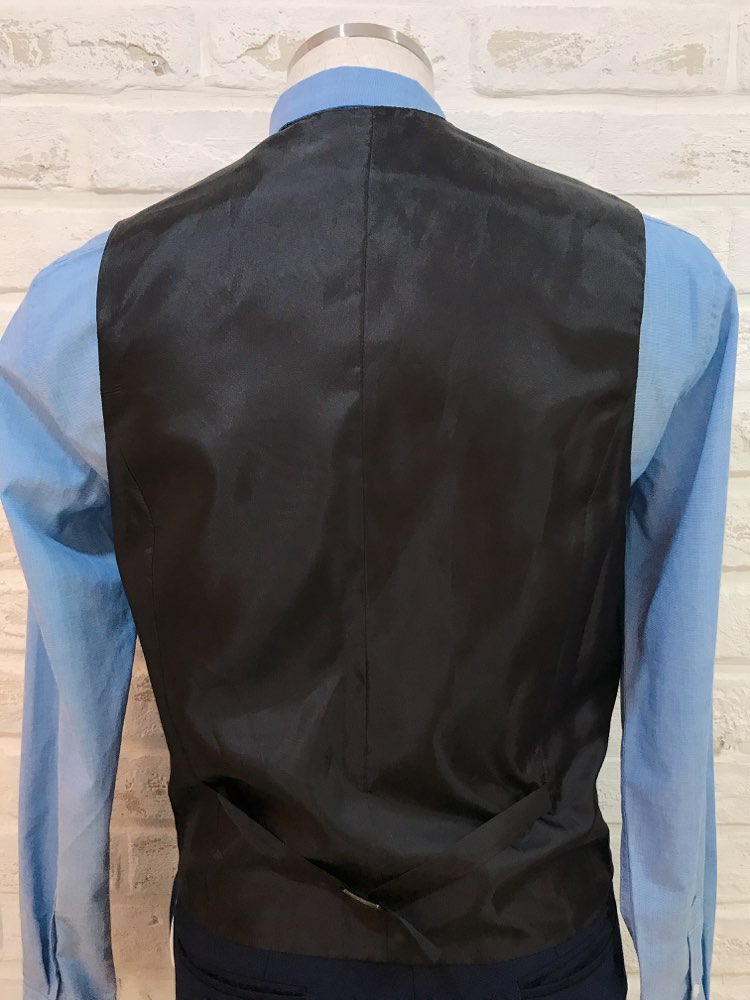 シンプルなネイビーのベストです。挙式にも披露宴やカジュアルなレストランパーティーにもお勧めです。