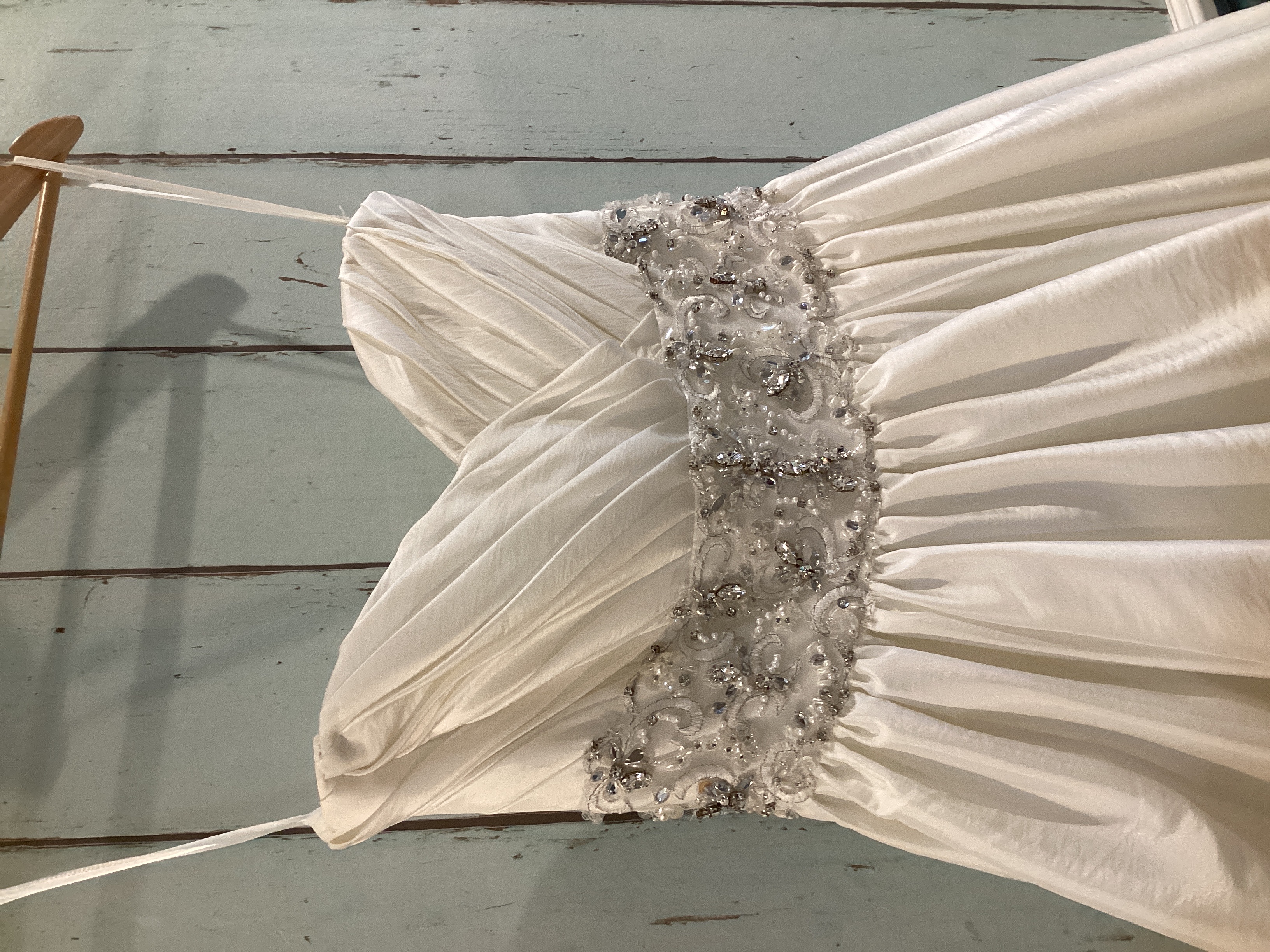 切り替え部分にあしらわれたビジューが動くたびに煌めいて華やかさをプラスしてくれます。