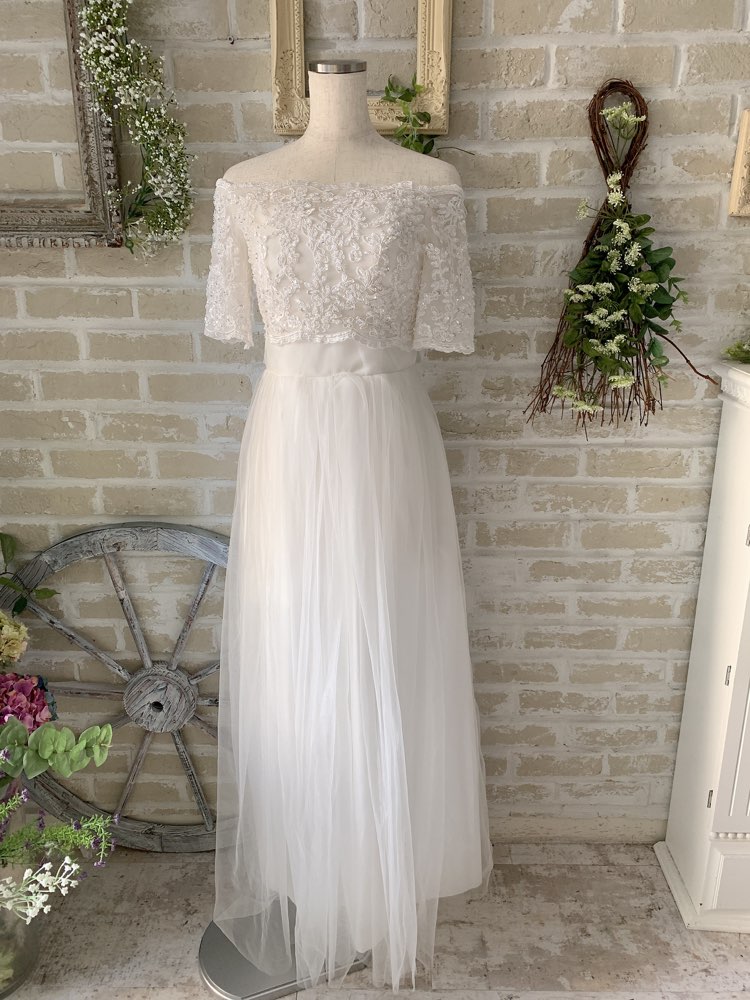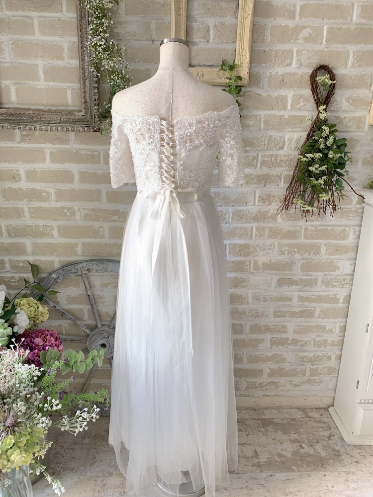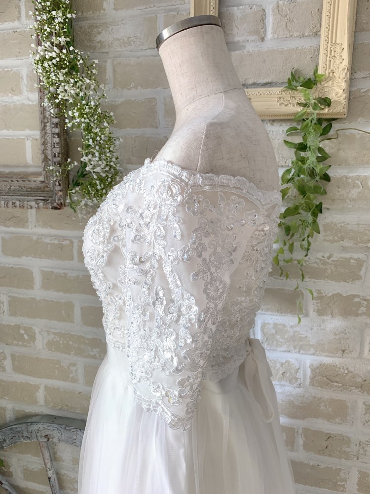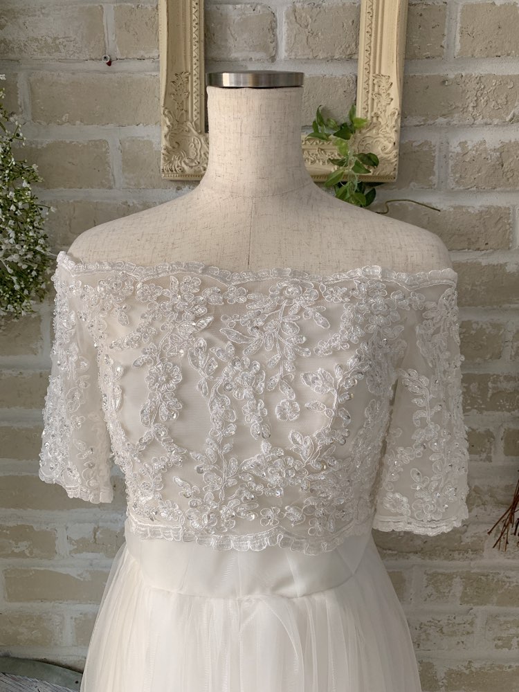 花嫁ウェディング用ホワイトレースオフショルダーボレロ