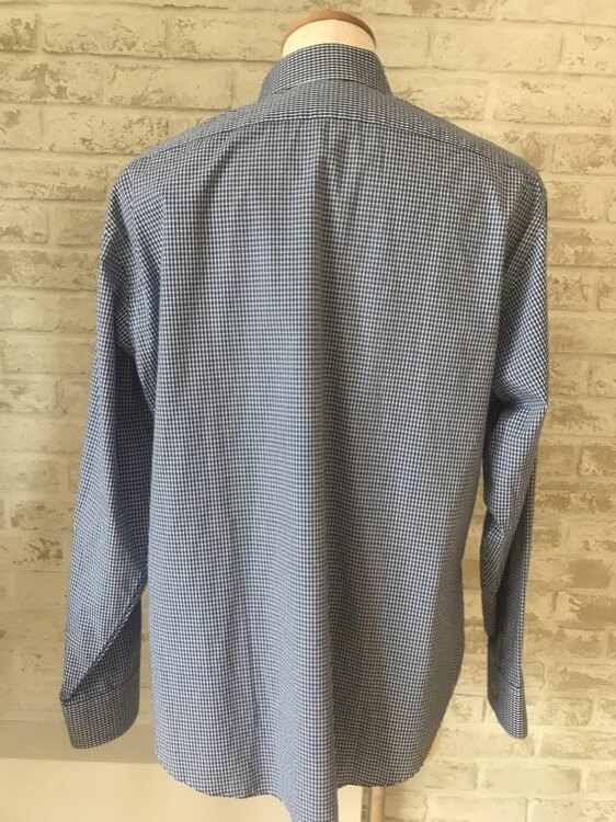 ネイビーのチェックで派手過ぎずまとまりよく着ていただけます。ブラック、ネイビー、グレーなど、どのお色味のスーツでも合わせやすく選びやすいです。シンプルではなくポイントやアクセントを入れたい方にはチェックは挑戦しやすく合わせやすいです。サイズは大きめなので高身長の方体格の良い方にオススメな一着です。